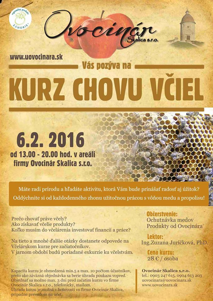 Práve zásady správnej včelárskej praxe, predstavenie zootechnických opatrení k eliminácii chorôb, a možnosti zvládnutia rozvoja chovu včiel aj marketingu produktov budú hlavnými témami kurzu chovu včiel, ktorý sa bude konať v Skalici v sobotu 6.2.2016. Viac informácií o kurze nájdu záujemcovia na webstránke www.skalica.vcelari.sk