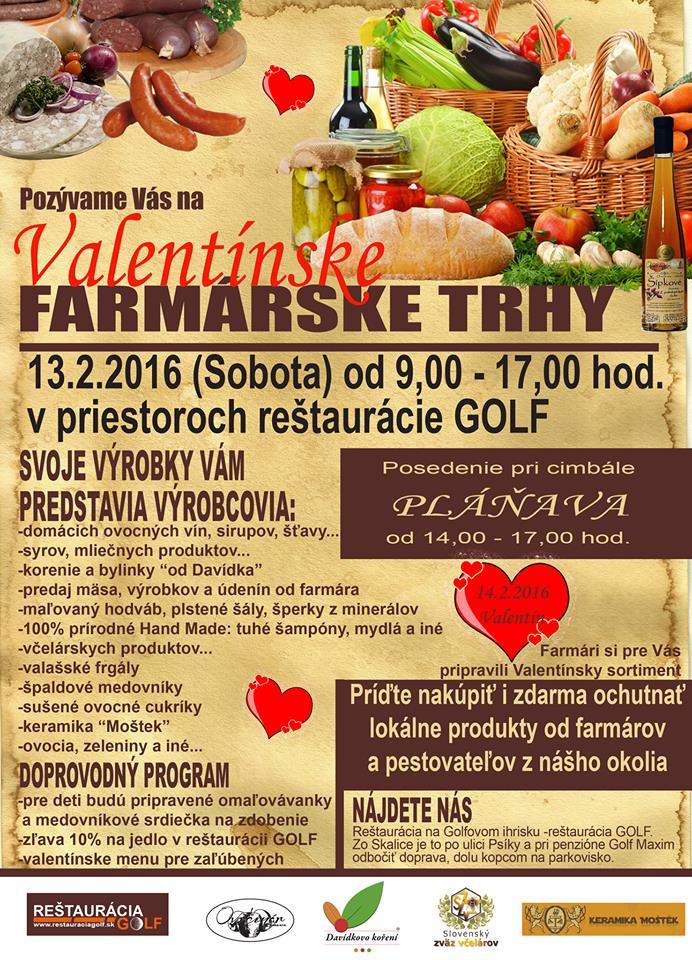Pozývame Vás opäť na farmárske trhy do Skalice, ktoré sa konajú v sobotu 13 februára 2016 od 9:00 do 17:00 hod. tento krát v priestoroch reštaurácie Golf. Množstvo farmárov predstaví svoje výrobky a posedieť si môžete u dobrého jedla pri „cimbálke“ Pláňava.
