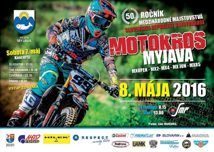 Zaujímavosťou tohto ročníka je, že motokrosu budú predchádzať koncerty rockových skupín pripravované priamo v motokrosovom areáli. V sobotu 7. mája tu od 18.00 h vystúpia kapely Hrana, The Paranoid, Gladiator a Coverage. Srdečne vás pozývame, príďte si užiť atmosféru 50. ročníka myjavského motokrosu aj so sprievodnými podujatiami!