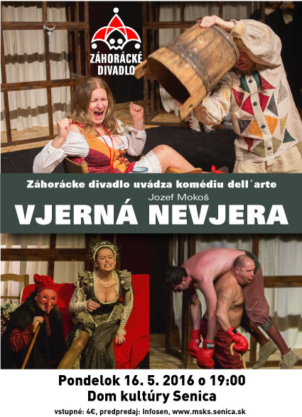 V pondelok 16.5.2016 o 19:00 odohrá Záhorácke divadlo v Dome kultúry Senica hru Vjerná nevjera v nových alternáciach. Tentokrát sa predstavia František Harnúšek ako CAPITANO a Ľuboslava Pavesková ako VDOVA.