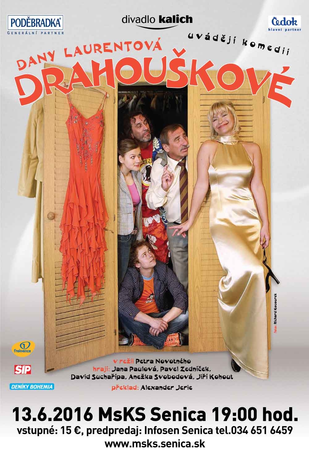 Vyhľadávaná dvojica popredných komikov Jana Paulová a Pavel Zedníček prichádza do Senice s novou komédiou. Divadlo kalich s hrou Drahouškové budete môcť vidieť v pondelok 13. júna o 19.00 hod. v Dome kultúry Senica.