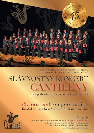 jún08 Komentáre vypnuté na Cantilena oslávi 45. výročie založenia slávnostným koncertom Cantilena oslávi 45. výročie založenia slávnostným koncertom Posted by TIK Záhorie Milí priaznivci zborového spevu. Srdečne Vás pozývame na slávnostný koncert Cantileny pri príležitosti 45. výročia jej založenia, ktorý sa uskutoční 18. 6. 2016 o 19 hod. v Kostole sv. Cyrila a Metoda v Senici – Sotina.Tešíme sa na Vás. Zdroj: senica.sk