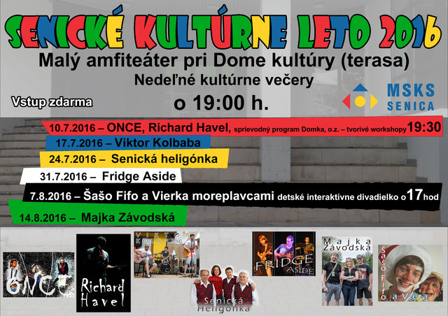Senické kultúrne leto – Fragile Queen Tour – koncert populárnych slovenských osobností, ktoré budú interpretovať známe rock-pop-jazzové hity svetových umelcov, vstupné 15 €
