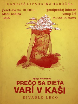 Senická divadelná horúčka prichádza s tretím predstavením, poeticko-výtvarnou divadelnou inscenáciou o detskej duši pre dospelých Prečo sa dieťa varí v kaši. Uvedie ju Kočovné divadlo Lečo v pondelok 24. 10. 2016 o 19.00 h v Dome kultúry Senica.