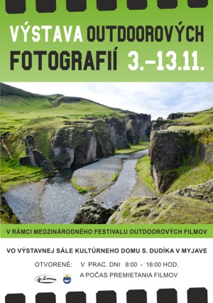 Súčasťou programu Medzinárodného festivalu outdoorových filmov 2016 v Myjave (MFOF 2016) bude okrem premietania filmov a besedy o expedícií v Himalájach aj výstava cestovateľských fotografii. Tie si budete môcť pozrieť vo výstavnej sále Kultúrneho domu Samka Dudíka v Myjave počas trvania festivalu od 3. do 13. novembra 2016. Výstava, ktorú pripravilo mesto Myjava a fotoklub Lumen, bude sprístupnená v pracovných dňoch od 8.00 do 16.00 h a vždy počas premietania filmov v jednotlivých blokoch festivalu. Srdečne vás na výstavu pozývame!