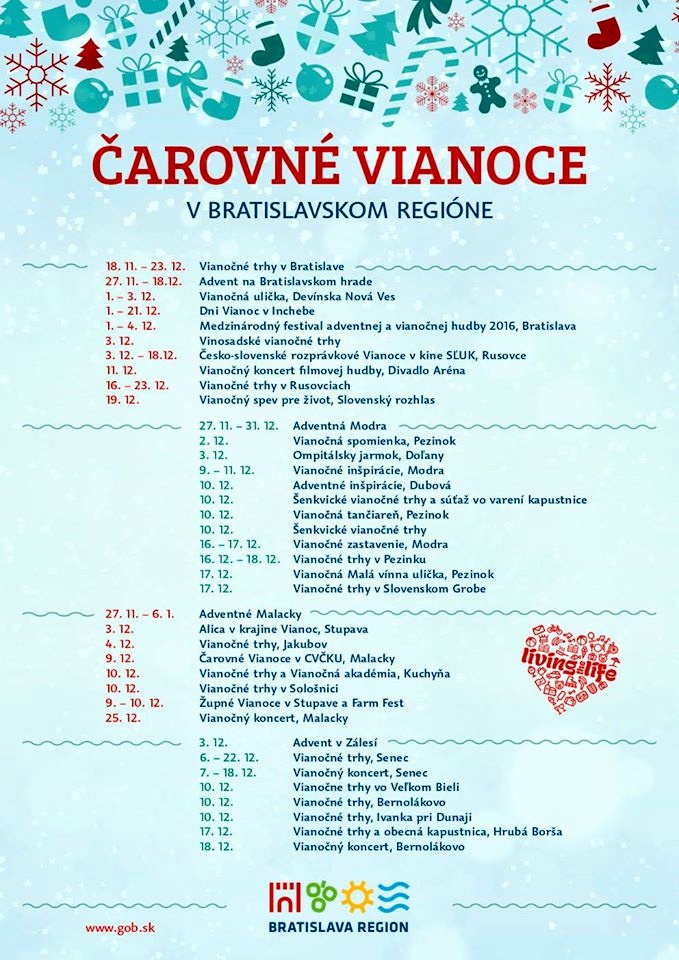 „Tento víkend bude patriť nielen Adventu, ale aj tradíciám a hudbe. Podujatia so sviatočnou atmosférou ovládnu celý región, a tak vianočnú náladu pochytíte všade, vyjadril sa výkonný riaditeľ KOCR Bratislava Region Tourism Lukáš Dobrocký.