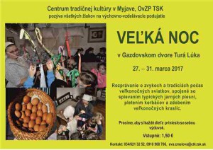 Ako napovedá samotný názov, bude sa konať v Gazdovskom dvore v myjavskej mestskej časti Turá Lúka, a to v termíne od 27. do 31. marca 2017. Pôjde o rozprávanie o zvykoch a tradíciách počas veľkonočných sviatkov spojené so spievaním typických jarných piesní, pletením korbáčov a zdobením veľkonočných kraslíc. Vstupné na toto podujatie je 1,50 € a záujemcovia sa môžu hlásiť v Centre tradičnej kultúry na Partizánskej ulici v Myjave na tel. číslach: 034/621 32 52, 0918 968 706 alebo na e-mailovej adrese: eva.cmelova@ctk.tsk.sk.