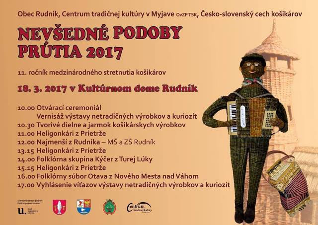 Centrum tradičnej kultúry v Myjave, obec Rudník a Česko-slovenský cech košikárov vás srdečne pozývajú na 11. ročník medzinárodného stretnutia košikárov, ktoré sa uskutoční v sobotu 18. marca 2017 v Kultúrnom dome Rudník neďaleko Myjavy.