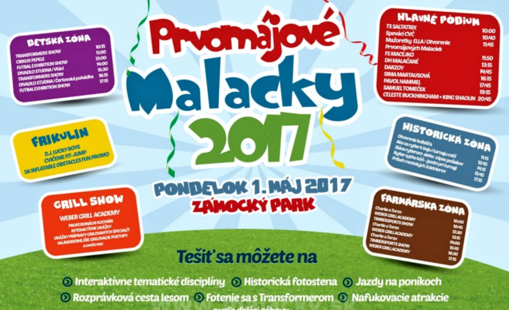 Dnes to síce vyzerá, ako keby mali byť Vianoce, ale v skutočnosti sa blíži 1. máj. Naše tradičné Prvomájové Malacky už majú svoj stanovený program a veríme, že si v ňom každý nájde to svoje. Od predpoludnia až po neskorý večer sa môžete zabaviť v rôznych zónach po celom Zámockom parku. Pre najmenších bude … Čítať ďalej Prvomájky: Celeste Buckingham, Samo Tomeček, rytieri, poníky, Transformeri atď.