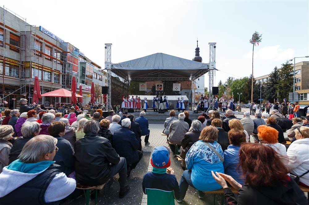 V prvomájové slnečné doobedie sa na Námestí oslobodenia vyhrávalo, spievalo a tancovalo na ľudovú nôtu. Prvomájové oslavy v Senici otvorili piesne v podaní Speváckeho súboru Seniorka, po nich rezké tóny zahral Klub priateľov heligónky Senica a po príhovoroch predstaviteľov mesta a politických strán už pódium patrilo súborom, ktoré predviedli ľudový folklór v plnej kráse. Predstavili sa menší či väčší krojovanci z DFS Čečinka (ZUŠ J. Kresánka Bratislava), Hanácká beseda (folklórny súbor Kojetín) a DH Krojovanka. Poobede návštevníkom prvomájových osláv zahrali kapely z domácej scény Energia, Viera Šusteková a hostia, Fridge Aside.