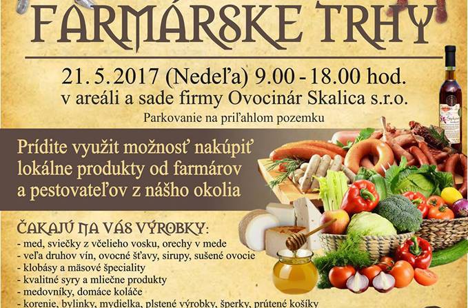 Pozývame Vás 21.5.2017 na Historické farmárske trhy v areáli Ovocinár Skalica s..r.o, . Pri príležitosti 800-tého výročia prvej písomnej zmienky o meste Skalica, sme sa rozhodli spraviť tieto farmárske trhy v historickom duchu. Program bude zameraný na rodiny s deťmi. Postavíme veľký slamený hrad, ktorý jedna skupina detí bude brániť , druhá skupina … Čítať ďalej Historické farmárske trhy v areáli Ovocinár Skalica s..r.o