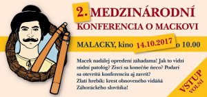 Téma Macka je však večná, a preto má stretnutie nadšencov recesie a humoru svoje pokračovanie. Macek nadálej opredení záhadama! Jak to vidzí súdní patológ? Ziscí sa konečně něco? Podarí sa otevrítú konferenciu aj zavrít? To je len niekoľko otázok, na ktoré budeme hľadať odpovede 14. októbra v kine (Kultúrním domčeku) v Malackách od 10. hodiny na 2. medzinárodnej konferencii o Mackovi. Účastníkov nadchádzajúceho stretnutia navyše čaká aj Zlatí hrebík: krest obnoveného vydáňá Záhoráckého slovňíka! Dojdite, bude sranda!