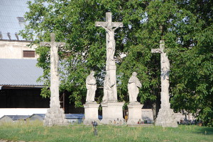 Ku Kalvárii okrem zastavení patrili ešte dve sochy umiestnené pred ňou.