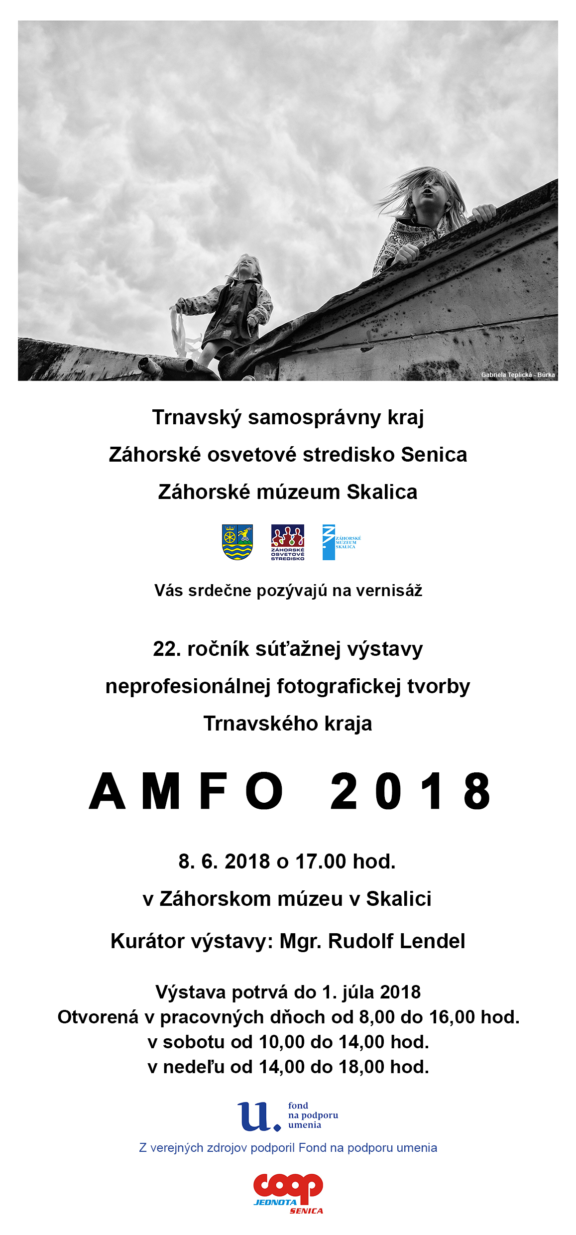 Trnavský samosprávny kraj – Záhorské osvetové stredisko v Senici v spolupráci so Záhorským múzeom v Skalici je usporiadateľom 22. ročníka krajskej súťaže a výstavy neprofesionálnej fotografickej tvorby Trnavského kraja AMFO 2018.