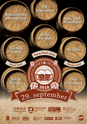 Široký výber toho najkvalitnejšieho piva, skvelý Street food, Farm Fest trhy a zábava – túto dokonalú kombináciu Vám Bratislavský Oktoberfest prinesie už túto sobotu, 29. septembra! Viac ako 20 regionálnych pivovarov vás na námestí SNP opäť presvedčí, že aj naše pivo môže byť svetové. Nebude chýbať ani široký výber Street foodu, Farm Fest zóna Vám aj tento rok ponúkne kvalitné víno, nealko a regionálne pochúťky. Skvelú atmosféru dotvorí jedinečný hudobný program – Billy Barman, Korben Dallas, Vec & Škrupo, Fragile a ďalší!