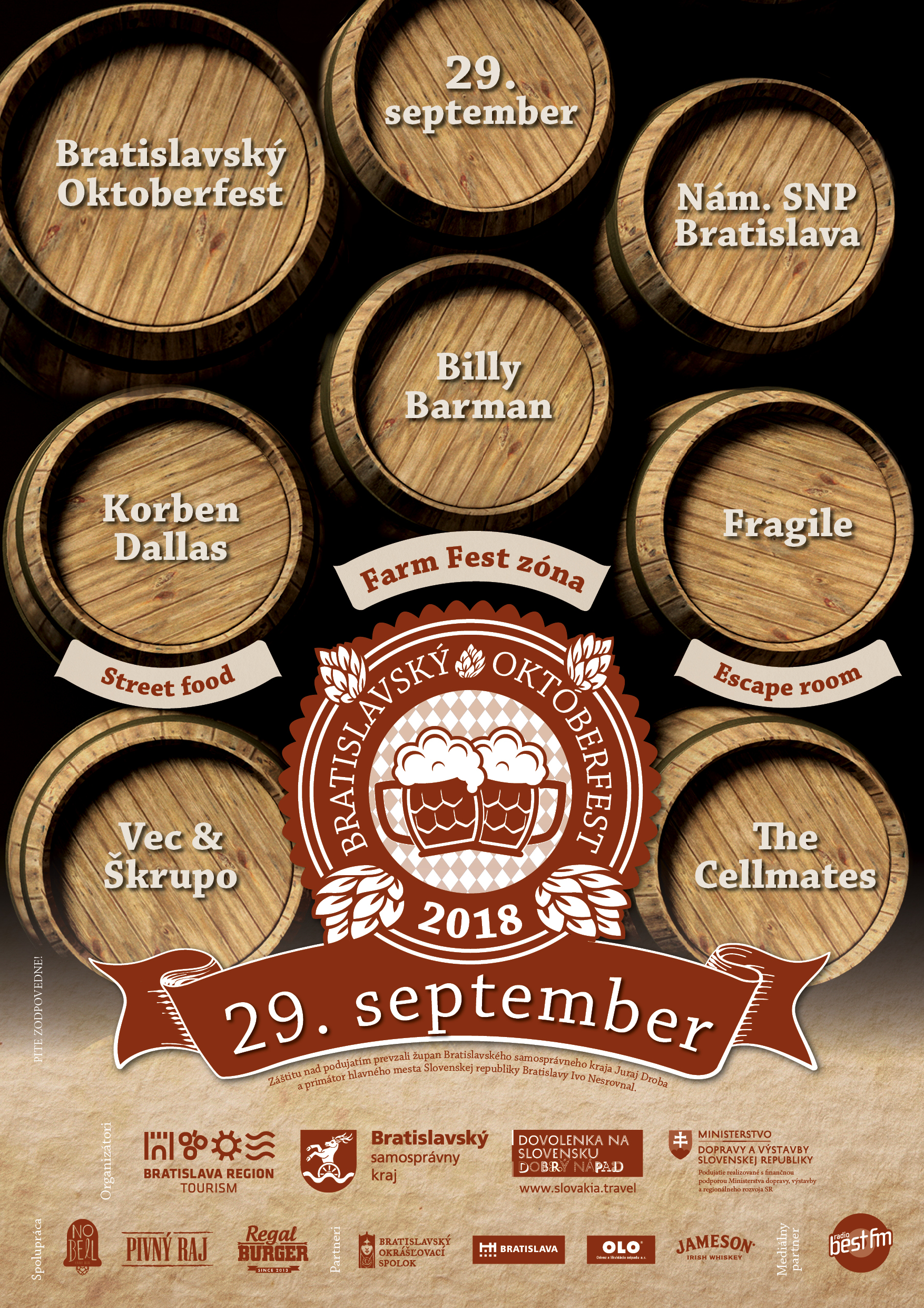 Ku spojeniu špičkového piva a Street foodu chýba už len skvelá muzika. Dokonalú atmosféru dotvoria kapely ako Billy Barman, Korben Dallas, Vec & Škrupo, Fragile a The Cellmates.