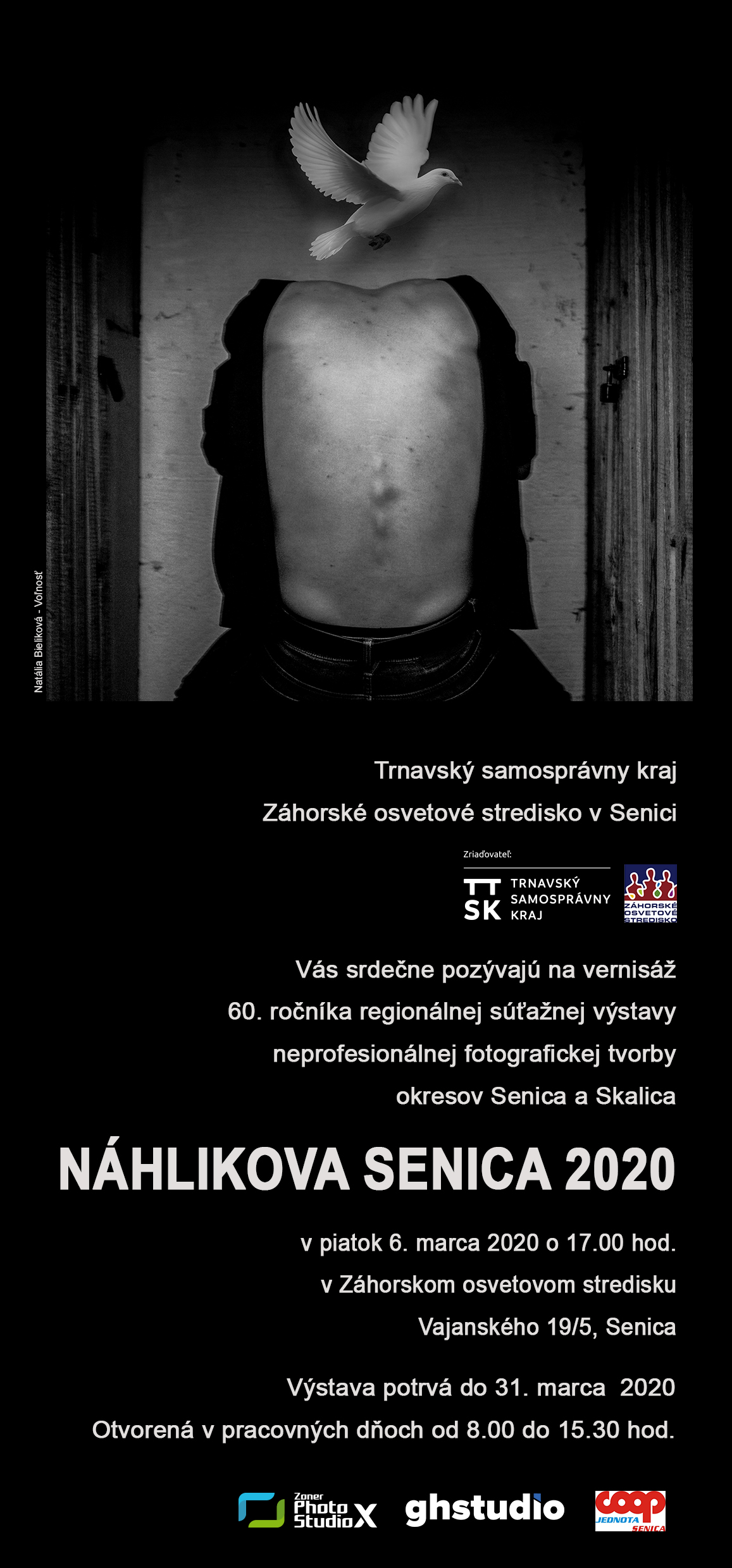 Výstava bude sprístupnená verejnosti od 6. do 31. marca 2020 a otvorená v pracovných dňoch od 8,00 hod. do 15,30 hod., vo výstavných priestoroch Záhorského osvetového strediska v Senici.