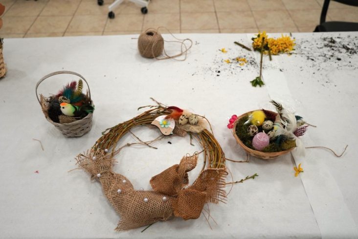 Vo štvrtok pred Veľkou nocou sa v Záhorskom osvetovom stredisku uskutočnil workshop výroby kvetinových aranžmánov. Z dôvodu choroby sme museli podujatie presunúť z pôvodného termínu, 9. 4., na Zelený štvrtok. O 16-tej hodine sa stretlo 5 šikovných a kreatívnych žien, ktoré sa naučili pliesť vence z brezových a vŕbových prútov, ozdobili ich jarnými dekoráciami, vajíčkovými škrupinami, machom, ale aj drevenými kuriatkami či zajačikmi. Okrem toho si každá domov odniesla aj jeden či viac aranžmánov, v ktorých využili zlatý dážď, vŕbu, gypsomilku či už spomínaný mach. Napriek tomu, že ich aranžérske schopnosti boli rôzne, stretli sa tu úplné začiatočníčky s pokročilými, každá sa naučila niečo nové pod vedením skúsenej kvetinárky Dominiky Nižnanskej. Strávili sme príjemné popoludnie v priateľskej a umeleckej atmosfére. Už teraz sa tešíme na ďalší workshop a voňavé aranžmány s nádychom leta.