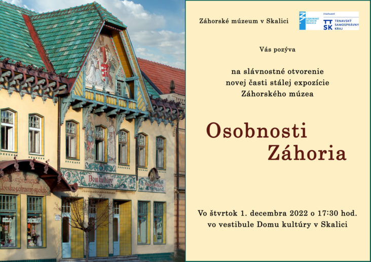 Záhorské múzeum v Skalici Vás srdečne pozýva na slávnostné otvorenie novej časti stálej expozície Osobnosti Záhoria situovanej v budove bývalého Katolíckeho kruhu, dnes Domu kultúry v Skalici. Dvojročné úsilie odborných pracovníkov múzea negatívne poznačila pandémia kovidu a posunula aj prezentáciu zberateľskej a výskumnej aktivity múzea v podobe novej expozičnej časti. Venovaná je osobnostiam regiónu, ktoré sa tu narodili alebo dlhodobo pôsobili. Nová expozícia ponúka návštevníkom dve formy pohľadu. Tradičnú, prostredníctvom trojrozmerných zbierkových predmetov, ktoré Záhorské múzeum získalo akvizičnou činnosťou; klavír operného speváka Janka Blaha, veľkorozmerný obraz s motívom sv. Alžbety, časť knižnice skalického evanjelického kňaza Dr. Jána Ďuroviča, kolekciu nábytku z pozostalosti kňaza a stredoškolského profesora skalického gymnázia Dr. Mateja Héseka či výtvarné diela Júliusa Koreszku zapožičané zo Záhorskej galérie Jána Mudrocha v Senici. Okrem nich bude priestor venovaný aj lekárovi, politikovi MUDr. Pavlovi Blahovi, zakladateľovi Záhorského múzea, ktorého rozsiahla pozostalosť sa nachádza v zbierkach múzea, jeho švagrovi, ktorý mal významný podiel na postavení budovy Katolíckeho kruhu, skalickému dekanovi, bratislavskému mešťanostovi Ľudovítovi Okánikovi, ostrihomskému arcibiskupovi Jánovi Černochovi, ktorý korunoval v roku 1916 posledného uhorského kráľa Karola IV. či dlhoročnému správcovi Spolku sv. Vojtecha Jánovi Pöstényimu.