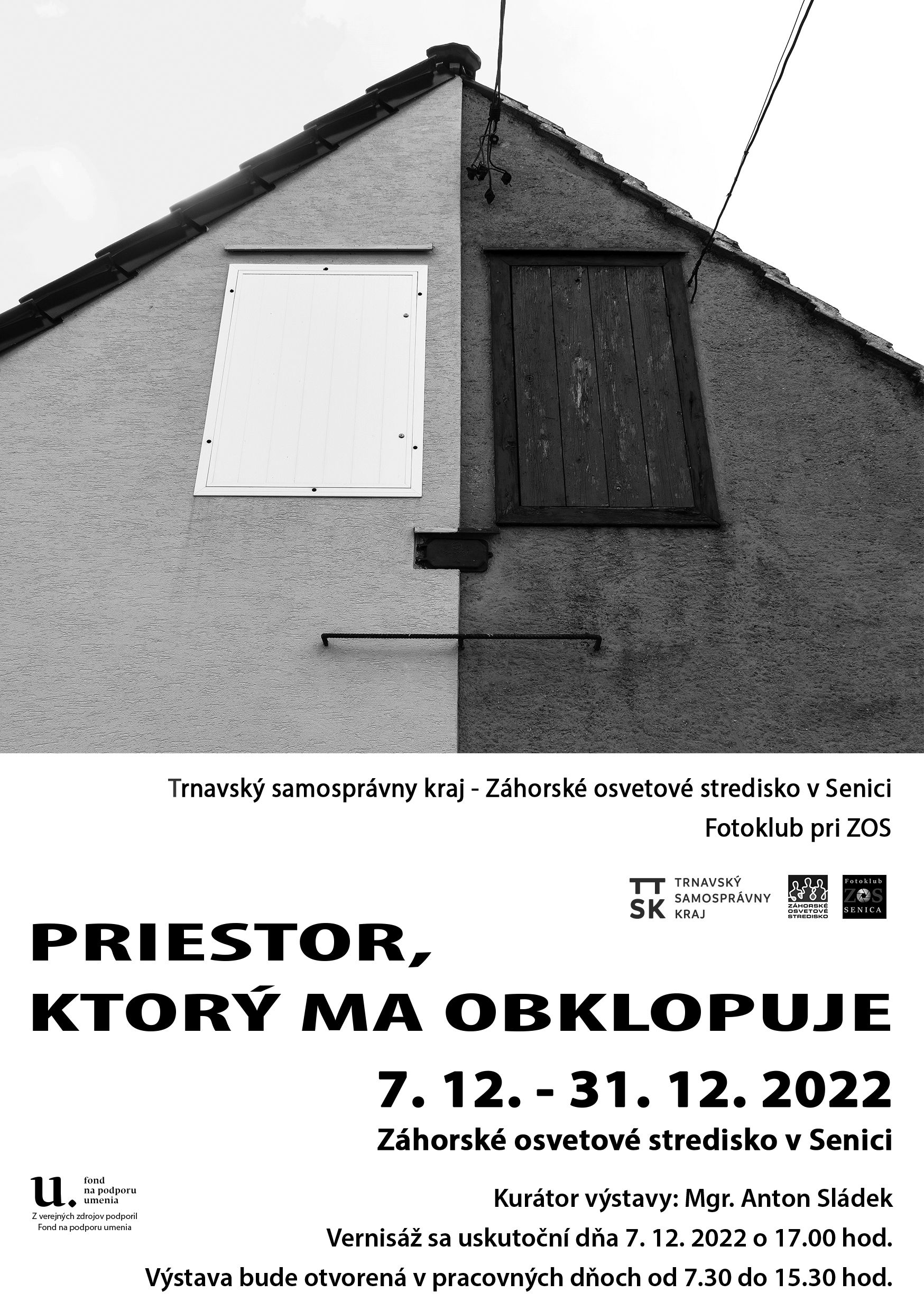 Trnavský samosprávny kraj – Záhorské osvetové stredisko v Senici Vás srdečne pozýva dňa 7. decembra 2022 o 17.00 hodine na vernisáž prezentačnej výstavy fotografií účastníkov workshopu, ktorý pod pracovným názvom STRETNUTIA S ANTONOM SLÁDEKOM prebiehal od mája do októbra v Záhorskom osvetovom stredisku v Senici. Výstava pod názvom PRIESTOR, KTORÝ MA OBKLOPUJE bude otvorená od 7. do 31. decembra 2022 vo výstavnej sále Záhorského osvetového strediska v Senici, Vajanského ulica 19/5, v pracovných dňoch od 7.30 do 15.30 hodiny. Podujatie z verejných zdrojov podporil Fond na podporu umenia.