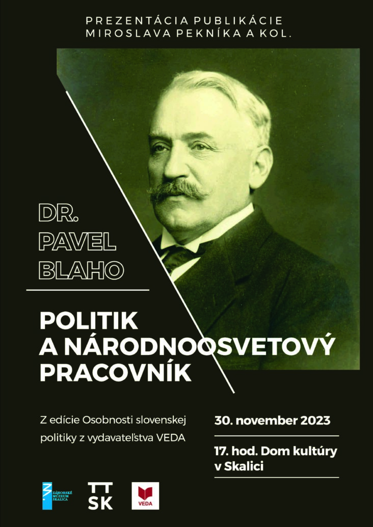 Významný slovenský politik, ktorý zohral dôležitú a nezastupiteľnú úlohu na prelome 19. a 20. storočia pri vzniku a budovaní Československej republiky, venoval všetky svoje sily hospodárskemu i kultúrnemu pozdvihnutiu slovenského národa. Ako lekár, poslanec v Uhorskom sneme, vedúca osobnosť a šíriteľ česko-slovenskej spolupráce na moravsko-slovenskom pomedzí, neskôr poslanec v československom parlamente a v agrárnom hnutí zanechal za sebou dielo, ktoré doposiaľ nebolo komplexne zhodnotené a docenené. Záhorské múzeum v Skalici spolu s vydavateľstvom VEDA pripravilo uvedenie publikácie autorov Miroslava Pekníka a kol. s názvom Dr. Pavel Blaho politik a národnoosvetový pracovník, ktorá predstavuje zborník príspevkov z konferencie venovanej osobnosti Dr. Blaha v Martine a ktorá príspevkami erudovaných odborníkov výrazne prispeje k predstaveniu života a diela tejto významnej osobnosti, jedného z najväčších skalických rodákov. Jednotlivým aspektom sa budú venovať Miroslav Pekník, Vladimír Gonec, Miroslav Lysý a Jozef Schwarz.