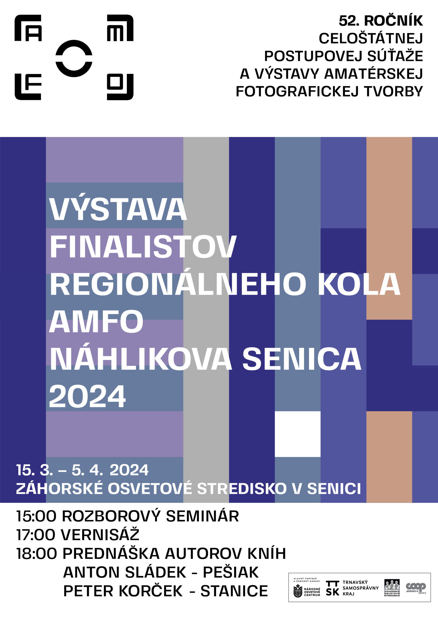 Vo výstavných priestoroch Záhorského osvetového strediska v Senici sa v piatok 15. marca 2024 o 17.00 hodine uskutoční vernisáž 64. ročníka regionálnej súťažnej výstavy neprofesionálnej fotografickej tvorby okresov Senica a Skalica – Náhlikova Senica 2024, ktorú pripravilo Záhorské osvetové stredisko Senica v zriaďovateľskej pôsobnosti Trnavského samosprávneho kraja. Náhlikova Senica 2024 je regionálnym kolom 52. ročníka celoštátnej postupovej súťaže a výstavy amatérskej fotografickej tvorby AMFO 2024, ktorej vyhlasovateľom, odborným garantom a hlavným finančným partnerom je Národné osvetové centrum v Bratislave z poverenia Ministerstva kultúry Slovenskej republiky. Súťaž oboslalo 36 autorov so 244 fotografickými prácami.