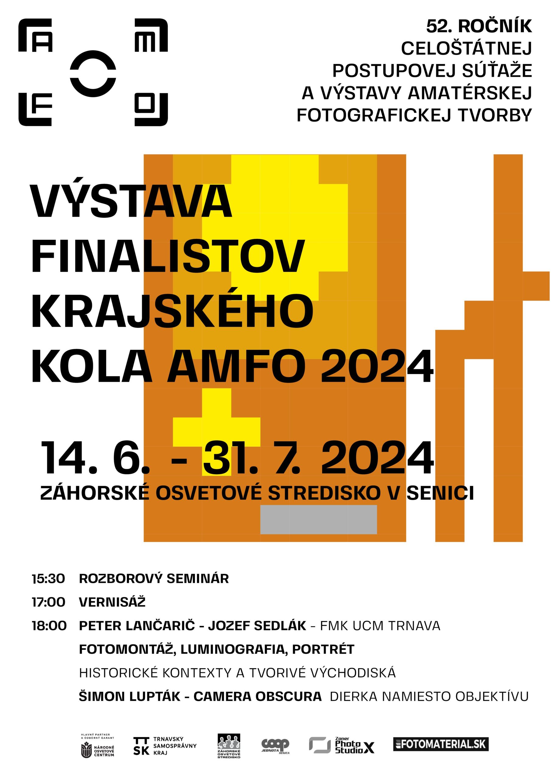 Trnavský samosprávny kraj – Záhorské osvetové stredisko v Senici je usporiadateľom 28. ročníka krajskej súťaže a výstavy neprofesionálnej fotografickej tvorby Trnavského kraja AMFO TTSK 2024. Súťaž je postupová – trojstupňová – ocenení a odporučení autori odbornou porotou z regionálnych kôl súťaže postúpili do krajského kola súťaže a následne do celoštátneho kola súťaže neprofesionálnej fotografickej tvorby – AMFO 2024.