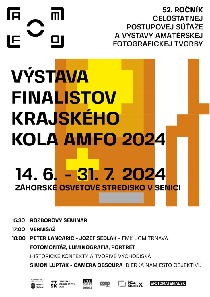 Trnavský samosprávny kraj – Záhorské osvetové stredisko v Senici je usporiadateľom 28. ročníka krajskej súťaže a výstavy neprofesionálnej fotografickej tvorby Trnavského kraja AMFO TTSK 2024. Súťaž je postupová – trojstupňová – ocenení a odporučení autori odbornou porotou z regionálnych kôl súťaže postúpili do krajského kola súťaže a následne do celoštátneho kola súťaže neprofesionálnej fotografickej tvorby – AMFO 2024.