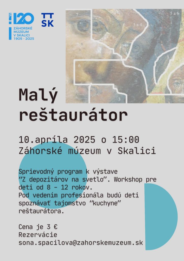 Zaujíma sa vaše dieťa o umenie, prírodné vedy, chémiu? Toto netradičné spojenie exaktných vied a kultúry v sebe nesie reštaurátorstvo. Spoločne sa pod vedením profesionála dozvedia, aké rôzne techniky reštaurátorstvo obnáša. Budeme sa snažiť pochopiť význam tejto práce, deti si umelecké zručnosti a rozvinú svoju kreativitu.