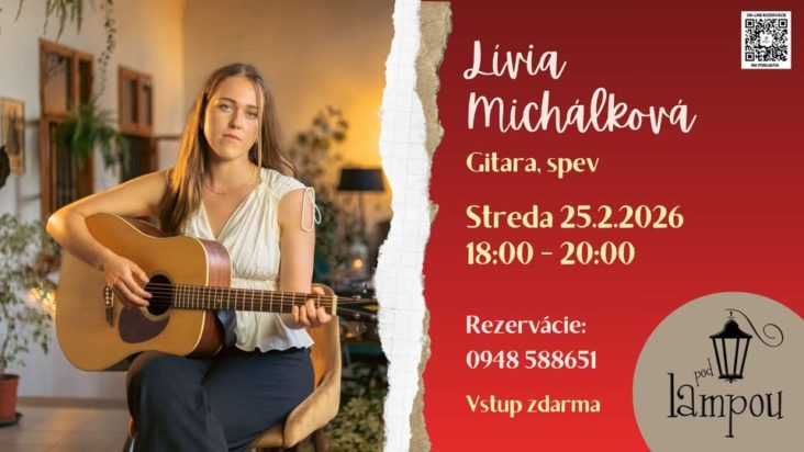 Hudobný večer s Líviou Michálkovou (známou aj pod umeleckým menom Livin Bloom)sa uskutoční v rámci cyklu „Hudobná streda“. Nadaná hudobníčka zaspieva a zahrá na gitare známe slovenské a české piesne v akustickom prevedení.