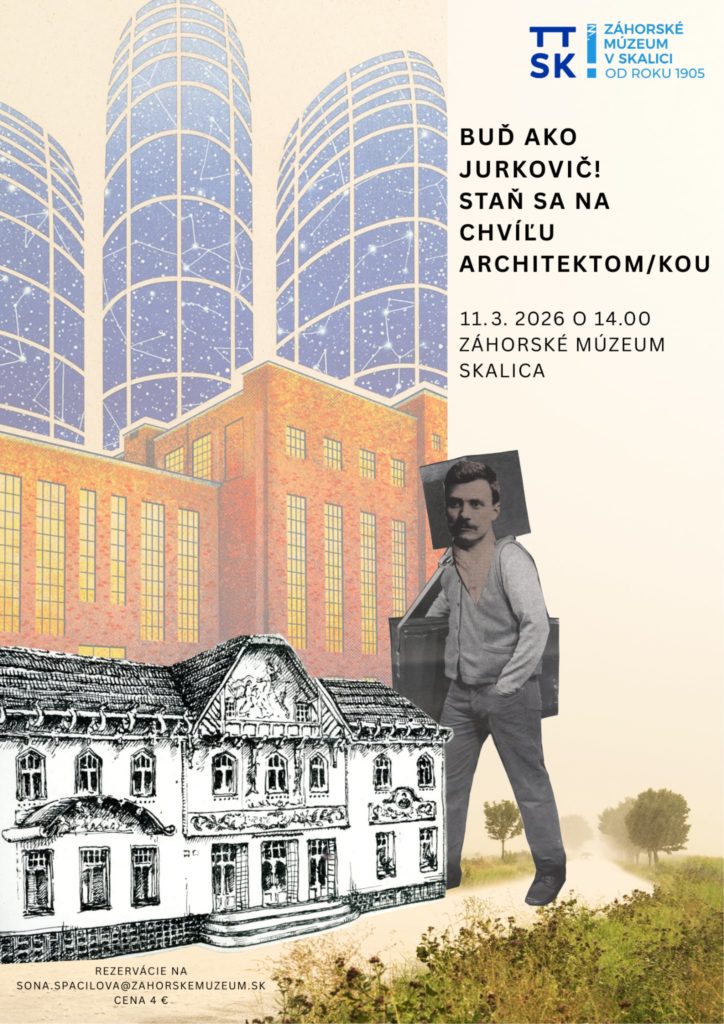 Pozývame všetky zvedavé deti, malých tvorcov, budúcich architektov aj veľkých objaviteľov 11. marca 2026 o 14.00 hod. na hravý workshop o architektúre, fantázii a odvahe tvoriť. Spoločne sa vydáme po stopách Dušana Jurkoviča.