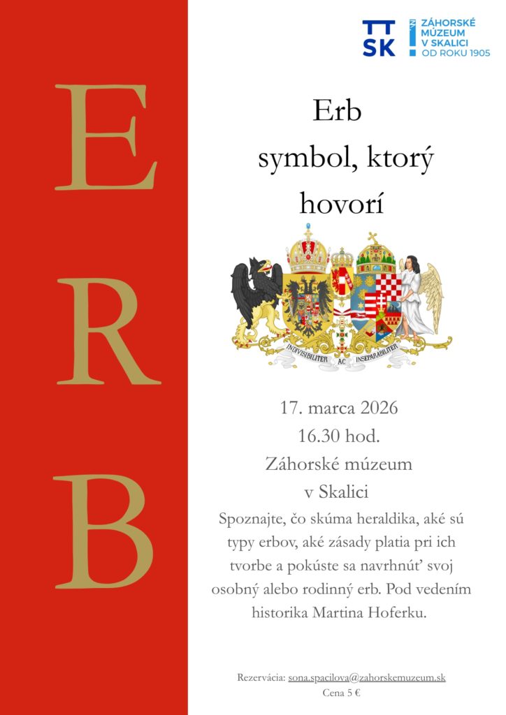 Workshop 17. marca 2026 o 16.30 hod. pre dospelých, na ktorom spoznáte, čo skúma heraldika, aké sú typy erbov, aké zásady platia pri ich tvorbe a pokúsite sa navrhnúť svoj vlastný osobný alebo rodinný erb pod vedením historika Martina Hoferku.