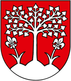 V červenom štíte zo stredného vŕška trojvršia vyrastajúca breza, z bočných po jednej ľalii na listnatej stopke, všetko strieborné.