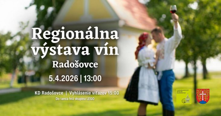 Regionálna výstava vín v Radošovciach (51. ročník) sa uskutoční v nedeľu 5. apríla 2026. Podujatie organizuje Vinohradnícky spolok Radošovce v spolupráci s partnermi z regiónu Záhorie.